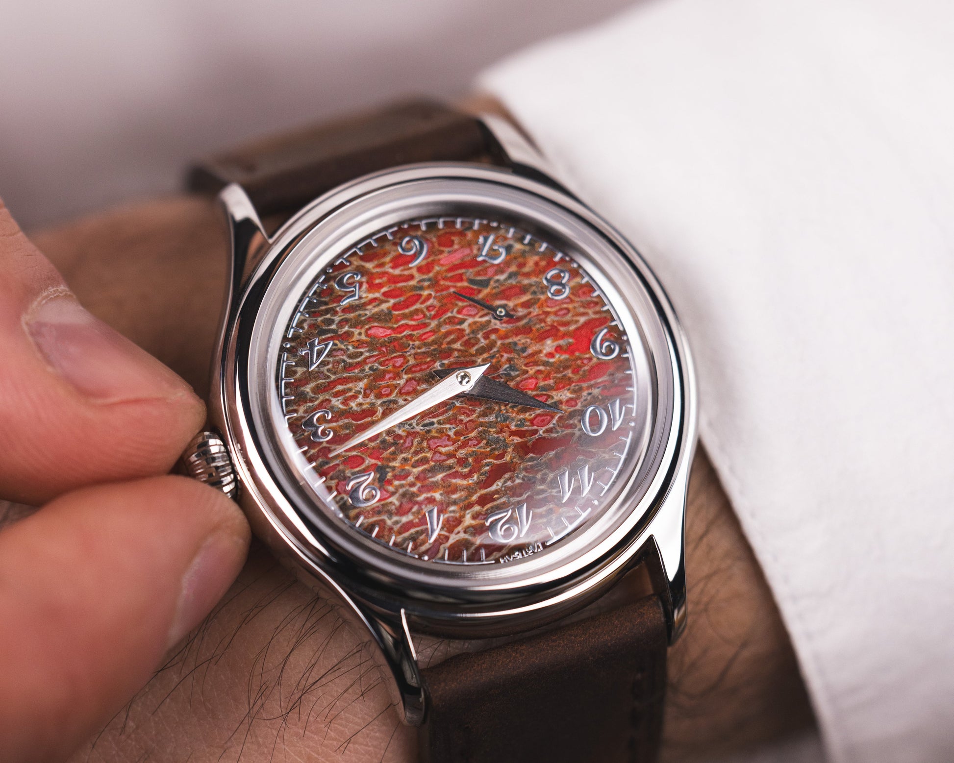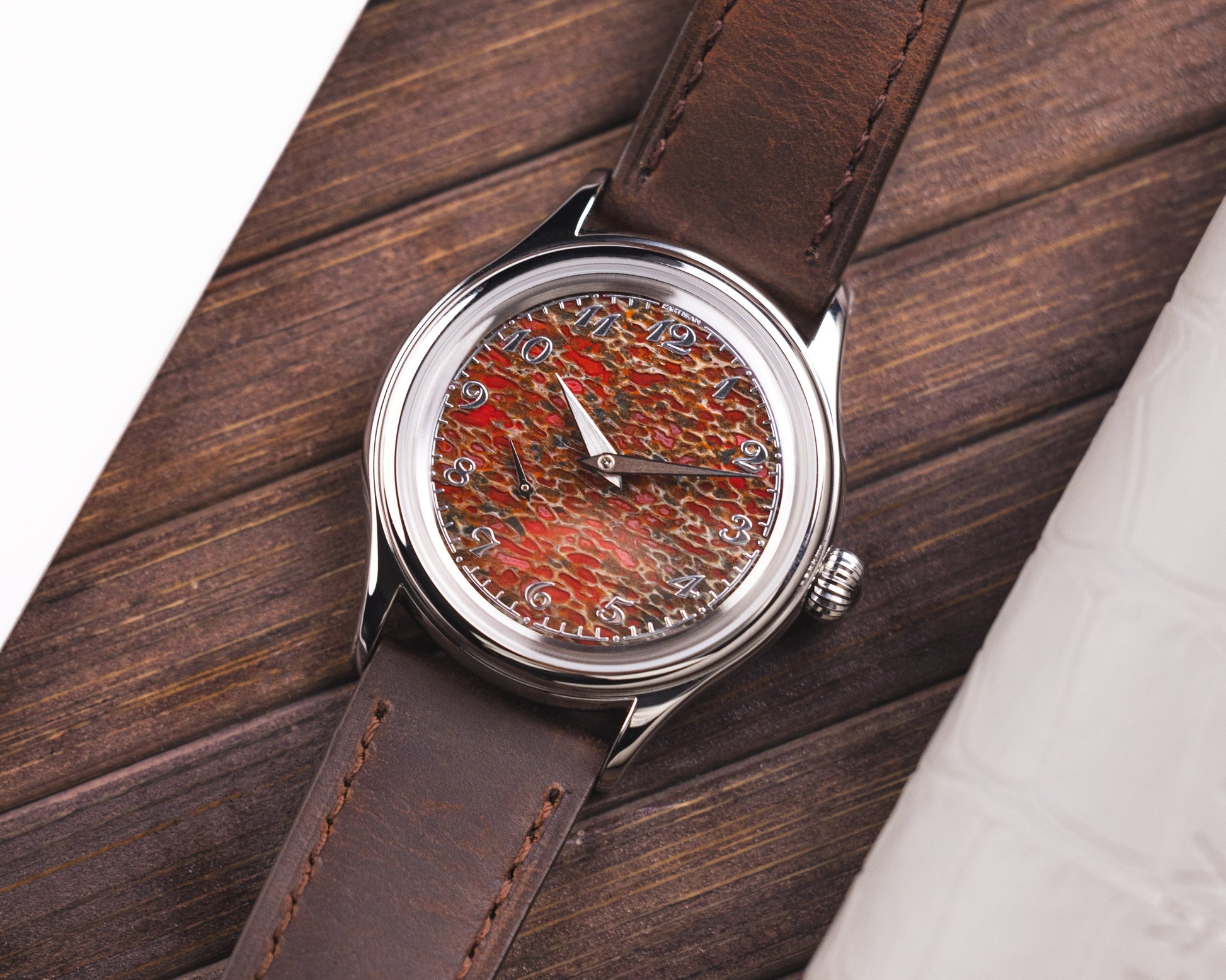 The material itself is sourced from Utah, USA, one of the most historically significant regions for dinosaur fossils. Bringing this to life in a watch has been both a technical and creative challenge and something that, to this day, remains exclusive to L’Artisan.